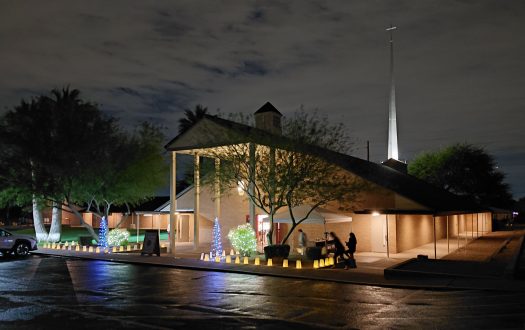 Upland is an eastern suburb of Los Angeles in what is known as the Inland Empire. Once a major agricultural area, the Inland Empire now consists primarily of bedroom communities for folk commuting into Los Angeles. The San Gabriel Mountains lie to the north of Upland and create a spectacular view (smog permitting). The San Gabriels’ highest peak, colloquially known as Mount Baldy, is especially noticeable. The church is in a standard middle-class neighborhood.